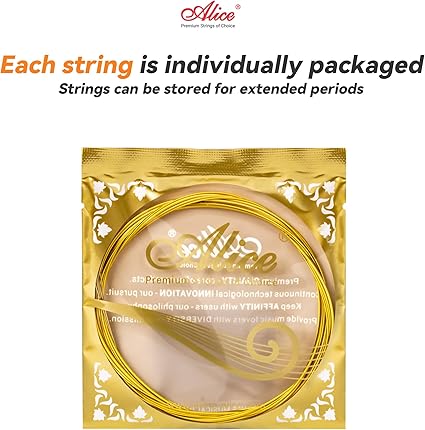 Alice Acoustic Guitar Strings 6 String Set | Designed for Professional Concerts | Multi-layer nano-coating | Fully Coated Golden | Phosphor bronze for Classic Warm and Bright tone | Super Light 1 Pack