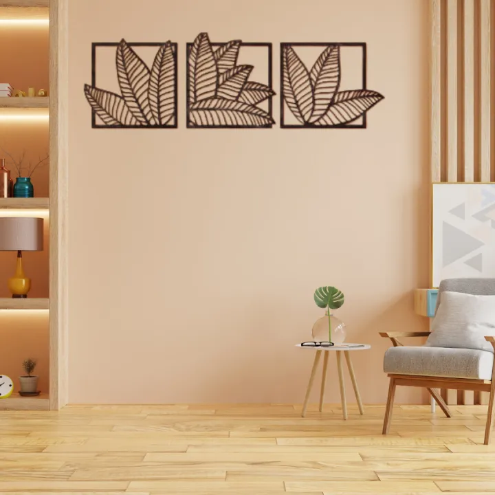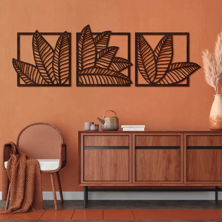 Palm leaf wall art, Leaves wall hanging, Banana leaf wall decor, Wood panel wall art, Set of 3 wall art nature, Boho leaf wall art by Doob Cart
